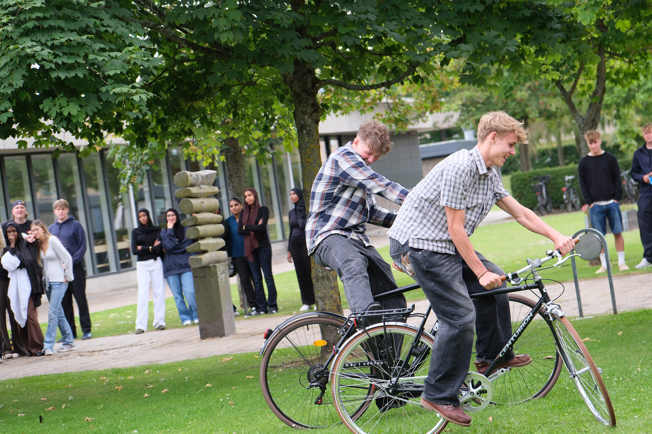 • Vi har en levende udveksling med det omgivende samfund. Vi tager ud i verden og verden ind i undervisningen.